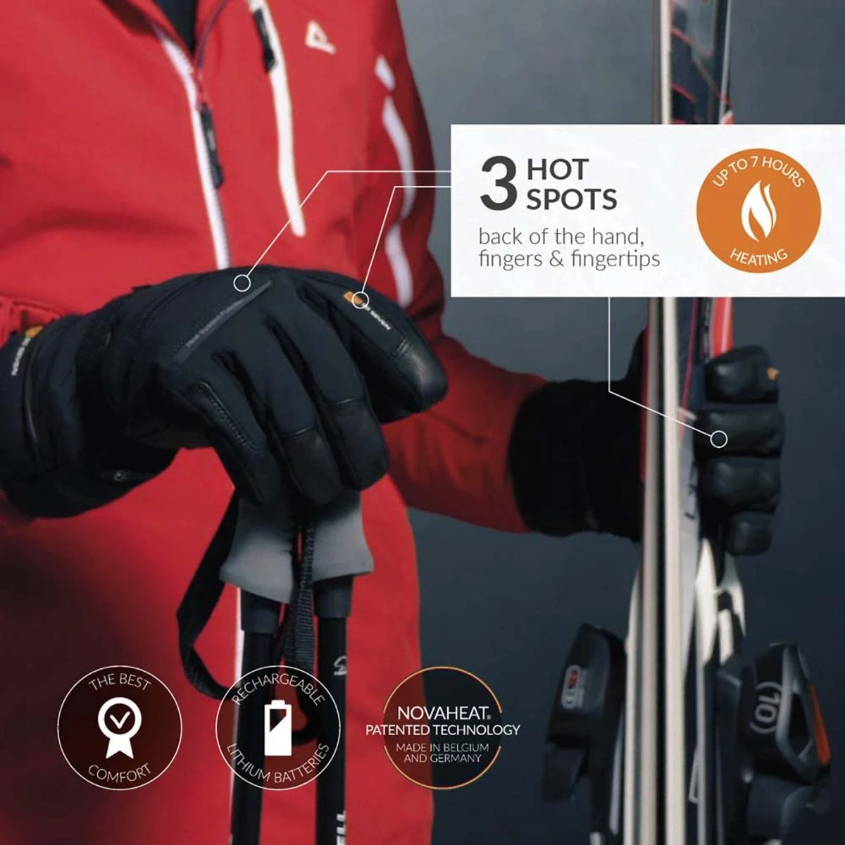 These extra warm heated 30seven gloves offer the perfect solution for people who suffer from cold hands. The integrated Novaheat technology will instantly give you warm hands and fingers! The gloves are also waterproof, wind resistant and have an adjustable Velcro strap plus elastic wrist enclosure to retain the warmth. A 3-layer Hipora membrane prevents water from coming in while letting moisture out. Additional reinforcement with high-quality leather in important areas, on top and bottom of the glove, gives you extra protection and prevents grazes and cuts. Furthermore it is possible to use your smartphone with these gloves thanks to the integrated index touchscreen finger.