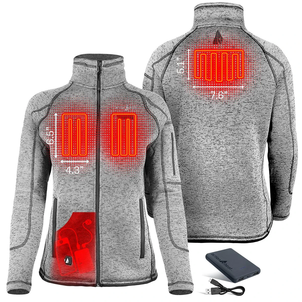 The ActionHeat 5V Battery Heated Sweater Jackets offer unparalleled comfort and excellent heating performance. This lightweight, but soft and wind-resistant fleece jacket provides excellent versatility for any adventure & weather. Using the patented 5V signal technology, it allows for most 5V batteries to be used with the ActionHeat Jackets and Vests. The ActionHeat Jacket comes with a super powerful ActionHeat 5V Power Bank 6000mAh. This power bank powers your garment and can also charge your phone, tablet, or any USB-charged device. Note: Heating times will diminish if used to charge other devices.