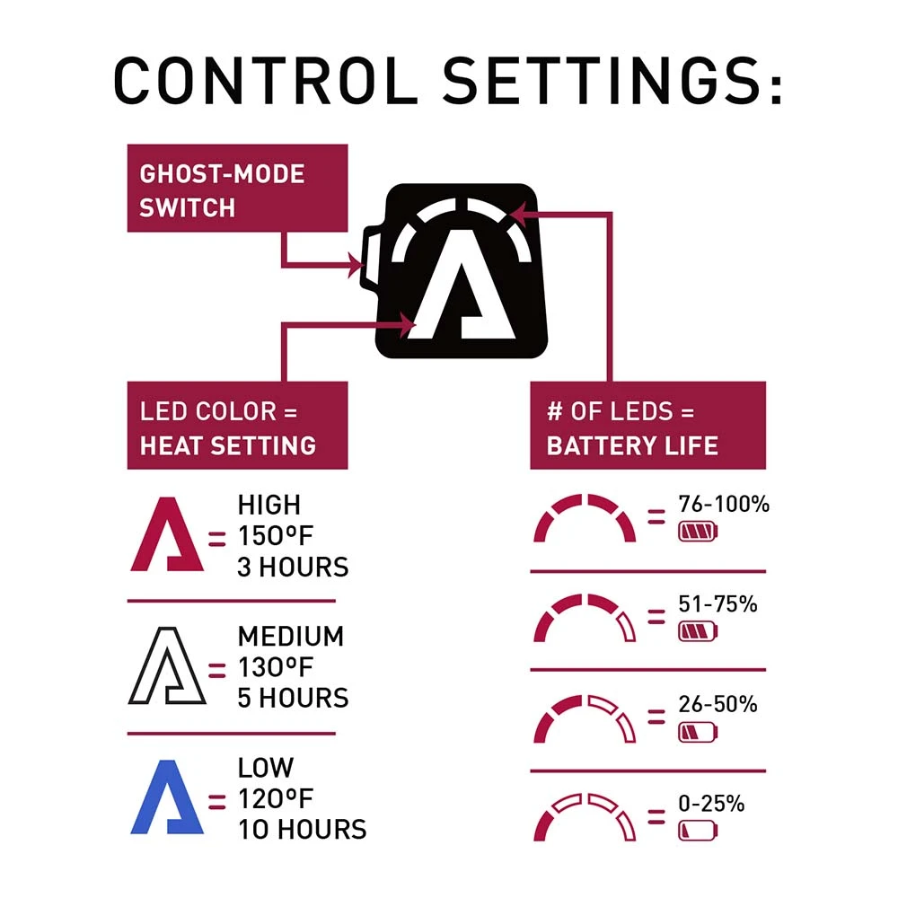 - Turn On – Press and hold touch-button control on the scarf for 3 seconds. Press touch-button to adjust the temperature.