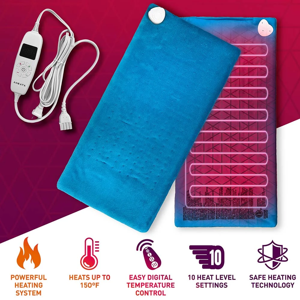 Stay warm & comfortable with the durable & stylish Aheata Heated Pad With Digital Controller! This fleece pad warms your body quickly so you can stay cozy & comfortable. This double-sided heated pad features 10 heat settings and 3 timer settings for the ultimate comfort. This product features overheat protection, is ETL-tested and certified, and is machine washable.