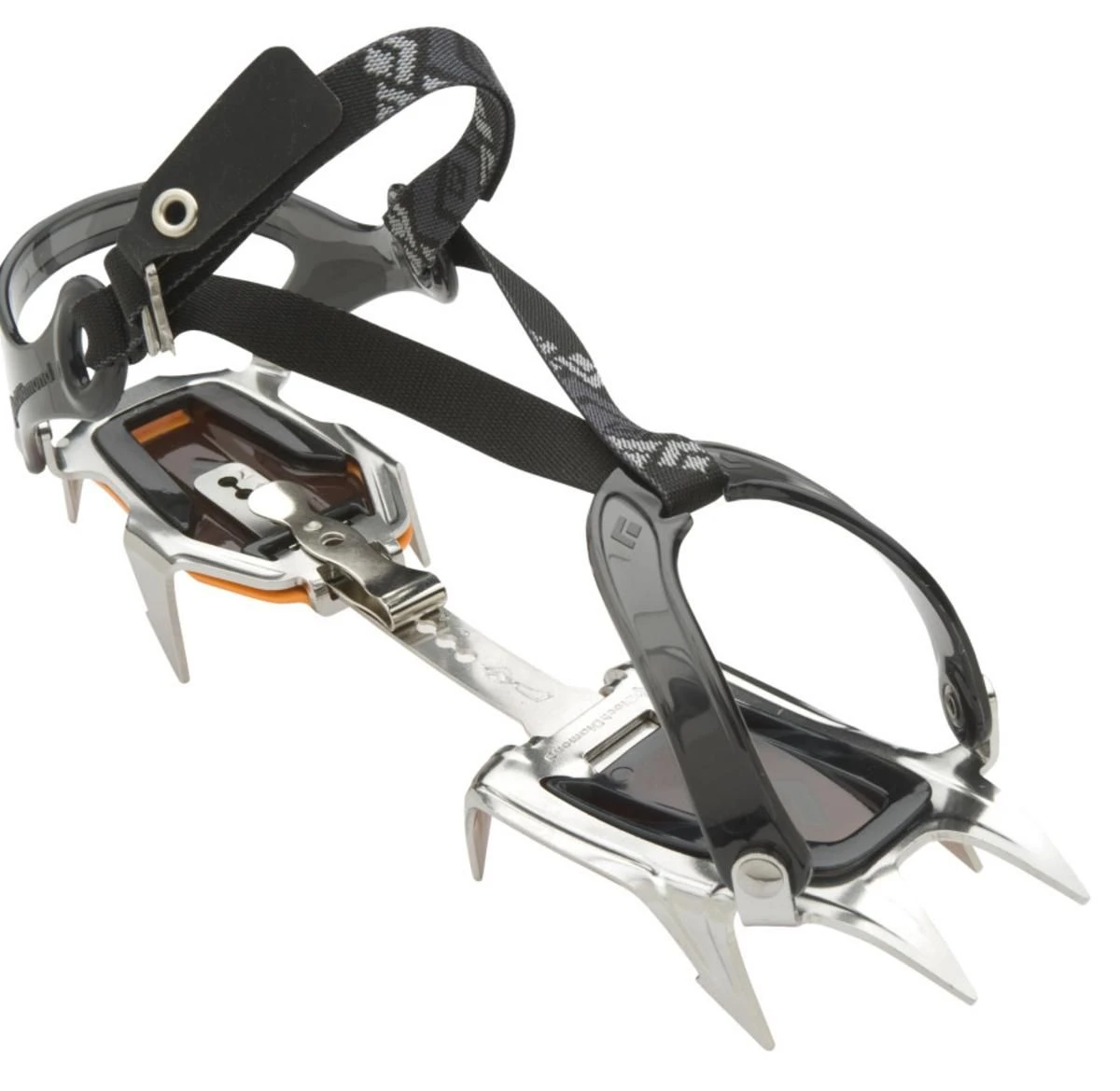 Designed for ice and snow travel, the lightweight Black Diamond Contact crampon is ideal for mountaineers, skiers and hikers. Its stainless steel construction won’t rust and avoids environmentally toxic coatings that wear off in the mountains. The compact, 10-point design offers easy walking, while the fast-adjust attachment system accommodates almost any footwear. ABS plates included.