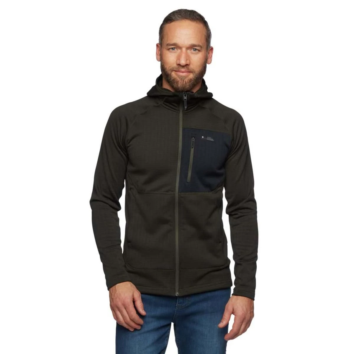 From summer rock routes in the Sierra to tedious ice leads in the heart of winter, the Black Diamond Factor Hoody delivers four-season, technical midlayer performance in a light, stretchy and quick-drying package. The hoody’s close-fitting, under-the helmet hood helps retain warmth on chilly approach pitches and lets you leave the beanie at home, while zippered hand and chest pockets secure small on-route essentials.