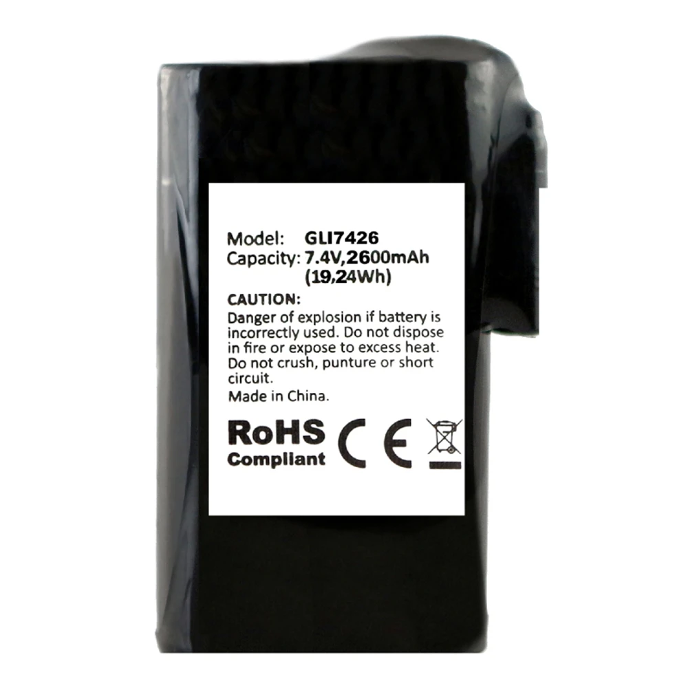 - Battery: 7.4 V, 2600 mAh (19,24 Wh), Li-Ion