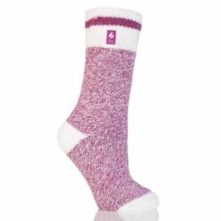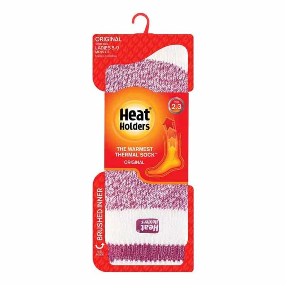 Keep feet warm on the coldest of days and pull on this pair of cream block twist style crew length Heat Holders for women, the warmest thermal sock.