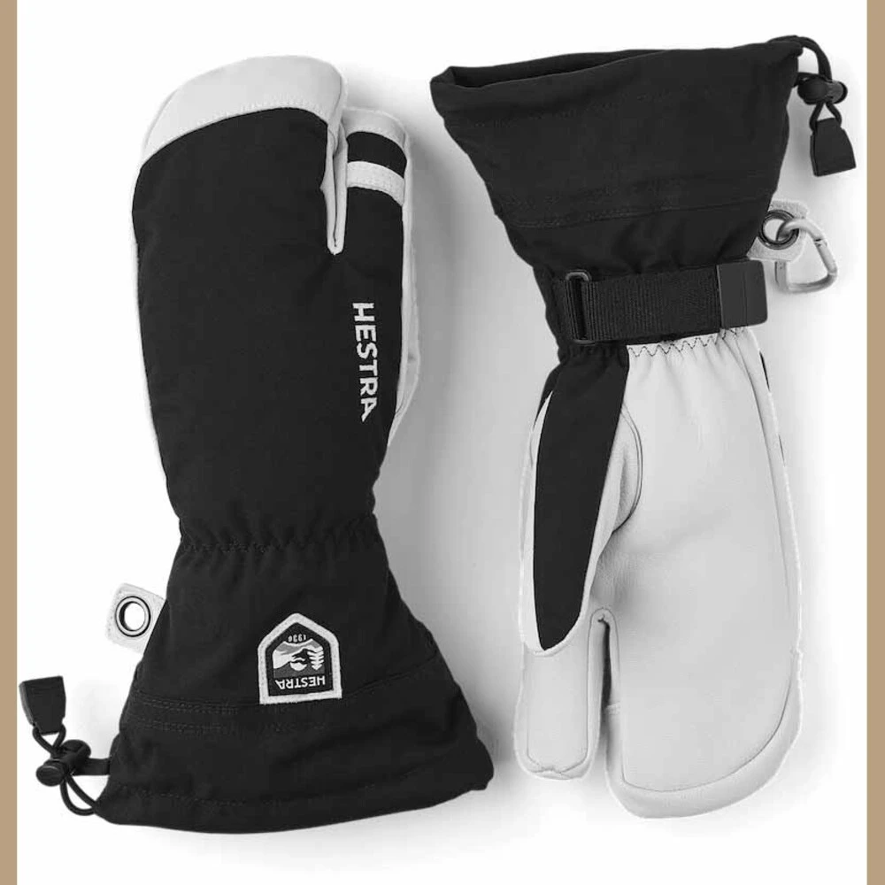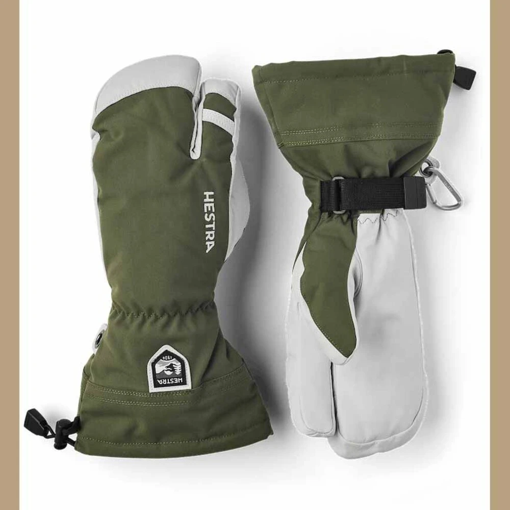 OUTER MATERIAL Upper section made of windproof, waterproof and breathable HESTRA Triton three-layer polyamide fabric. Proofed Army Leather-goat leather palm.