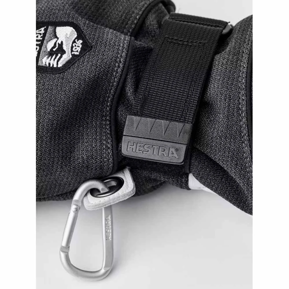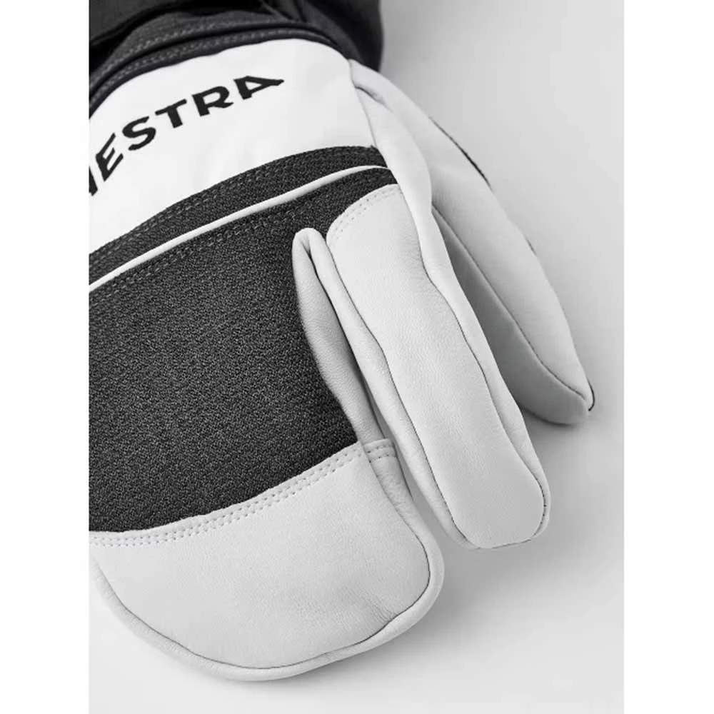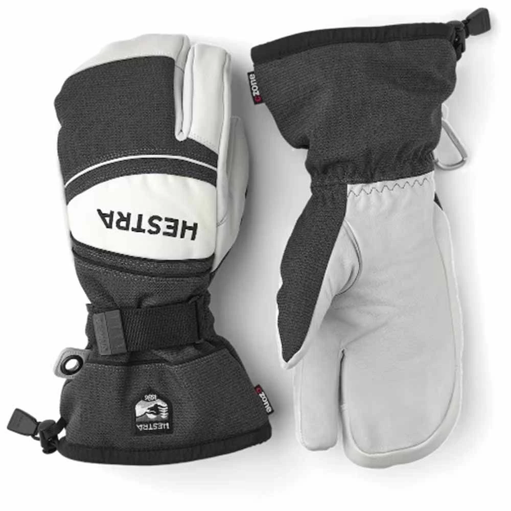 Long and sturdy coach glove developed in close cooperation with the coaches of the Swedish and Norwegian national alpine teams. A three-finger work glove for long days outdoors in all kinds of weather, as well as withstanding heavy wear and tear from handling sticks and other equipment.The outer glove is made from durable goatskin combined with two different synthetic fabrics for flexibility and comfort. A CZone membrane stops wetness while also wicking away moisture and keeping your hand comfortably dry. The liner is made of polyester fleece with warm synthetic insulation.This model is robust with carefully thought-out details. The leather palm has an Oil tacky coating for extra grip around poles and the like. The high cuff has a snowlock, and there�s a Velcro adjustment at the wrist. Hestra handcuffs (wrist strap) secure the glove if you take it off to work with just a liner on your hands. Also available in a five-finger model.