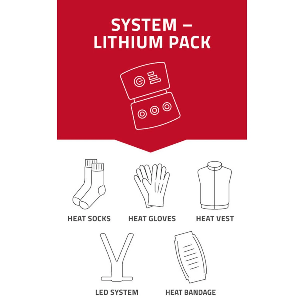 - Light lithium packs fit all models of Lenz heat socks, heat vest 1.0 and heat bandage 1.0