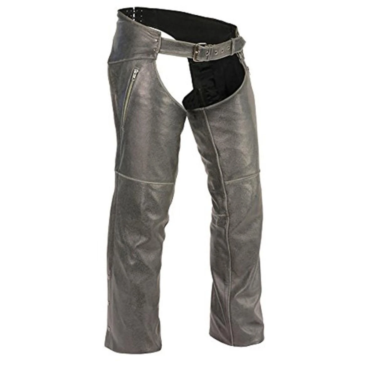 Milwaukee Leather Men’s Vintage Distressed Slate Chap with Deep Thigh Zippered Pockets.