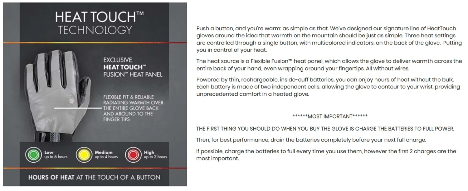 Heat Touch Gloves Includes: