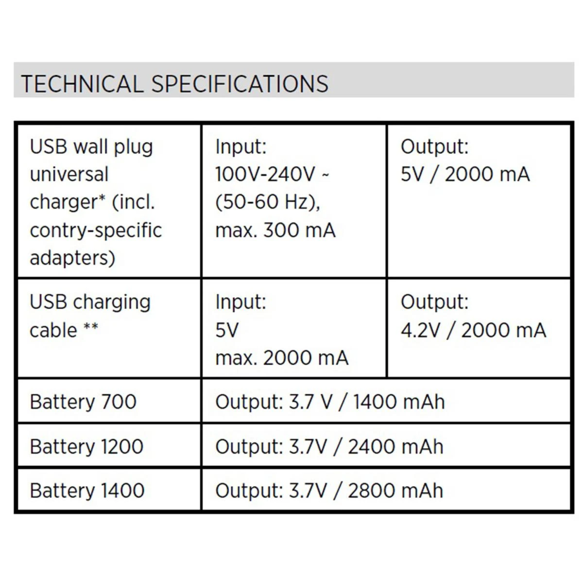 - Pack comes with a USB charger