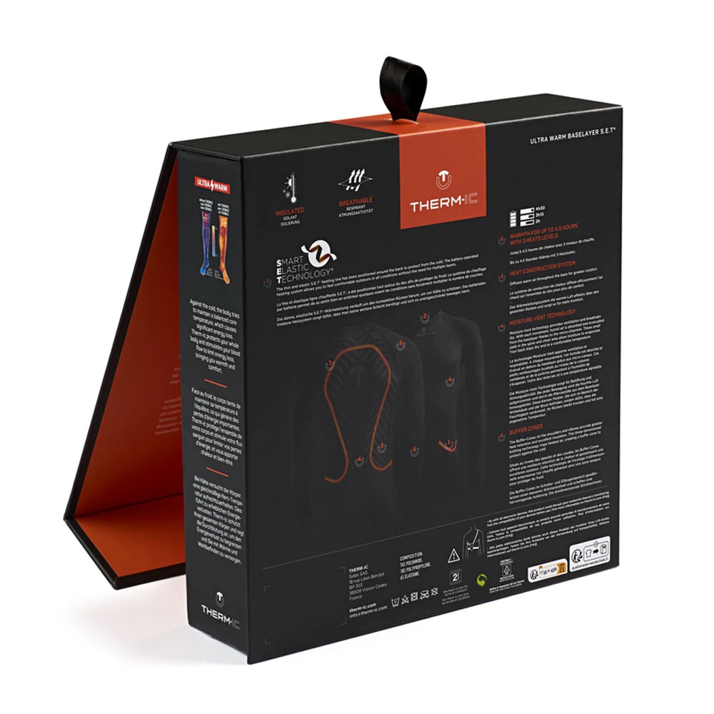 - Heated: This technical underwear features Smart Elastic Technology. The thin, elastic S.E.T heating line has been positioned around the back to protect from the cold.