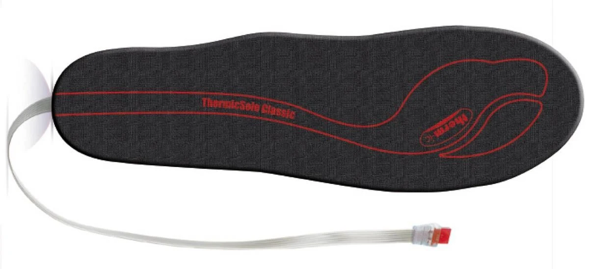 Therm-ic Classic insoles are flat insoles with a pre-installed heating element built into the toe area. All you do is trim the insoles to the size you require, slide them into your shoes or boots and plug in your battery to enjoy warm feet. You’ll receive 2 insoles that are about 1/8 inch thick.