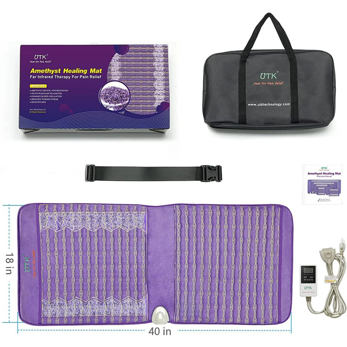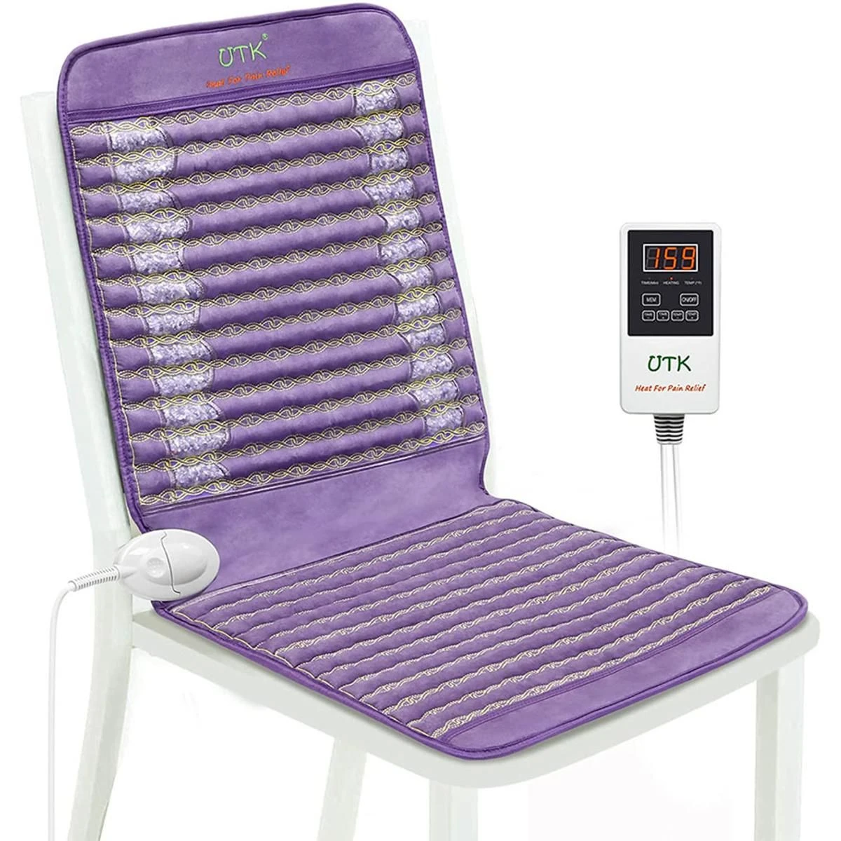 UTK Far Infrared Amethyst Healing Stone Heated Chair Seat Pad for Lower Back, Upper Back, Thigh Pain Relief, Memory Function, Auto Turn Off, Adjustable Temperature – 40″ x 18″