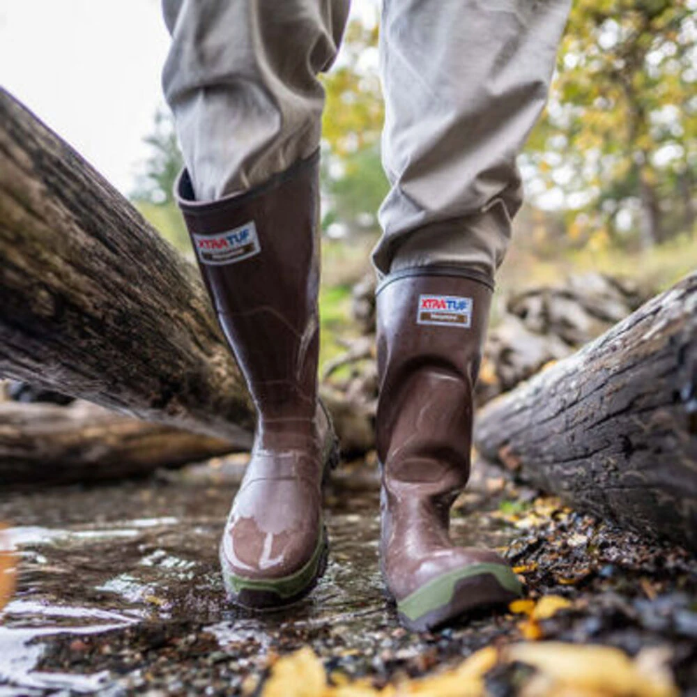 For over 60 years Xtratuf has been equipping commercial fishermen with Alaska proven footwear and boots. As fishing has evolved over the years so have the fishermen’s needs, therefore we continue to innovate and solve for how our boots can help our users stay safe, feel confident, and remain comfortable. Our iconic Legacy boot has been around since the late 50’s and our users are now wearing them in more environments and for more reasons than ever before. These new demands warrant innovation and so we integrated modern technologies and design features into the classic and well proven style. The Legacy Altitude is an all-terrain version of our classic Legacy boot. Built on a new outsole with multi-traction lugs designed for all terrain adventures while still maintaining SRA slip resistant when you find yourself back on wet and slippery decks. The outsole lugs are specifically designed to flex and shed debris as you move. 100% waterproof and constructed with our signature triple dipping technique, which creates a seamless and flexible barrier that is highly resistant to many organic and inorganic acids, chemicals, and contaminants The Altitude also features additional shin, ankle, and heel reinforcement to provide enhanced protection and durability.
